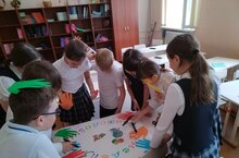 В 4Б классе ко Дню флага нашей республики было организовано коллективное творческое дело. С Орлятами прошла беседа о символах нашей республики. Потом с помощью бумаги и клея обучающиеся сделали флаг и забрали его домой, чтобы в каждом доме был символ нашей республики. -