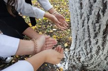 Участники акции набирали воду в сложенные лодочкой ладони и поливали цветы и деревья, отдавая дань памяти всем погибшим в терактах.