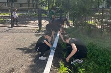 Ученики 7а класса свое утро начинают с уборки территории и полива цветов