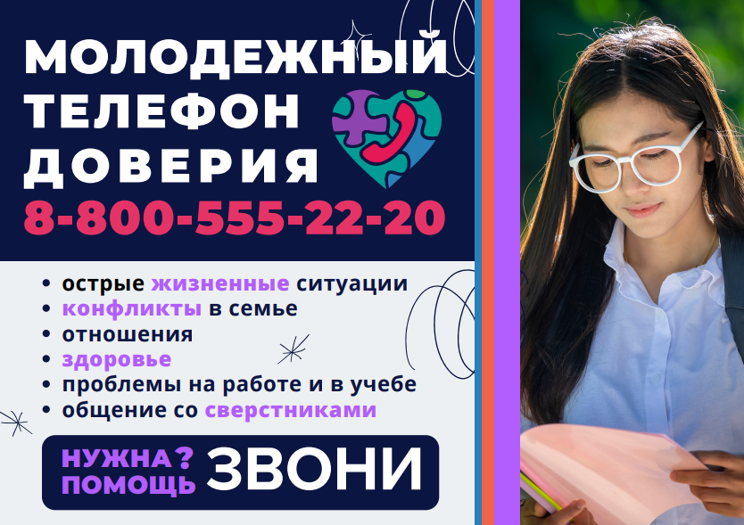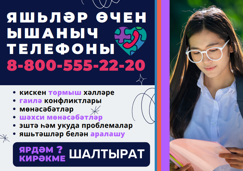 Молодежный телефон доверия (Яшьләр очен ышынчан телефон) 8-800-555-22-20