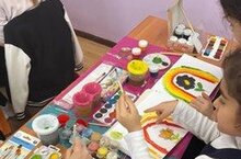 Сегодня ученики 9 класса Ахмадеев Ислам и Фаттахова Назгуль, провели для орлят 2б класса мастер- класс по смешиванию цветов и в результате получили яркие, насыщенные цвета. Маленькие орлята рисовали рисунки различными цветами, в завершении мастер-класса они сплотились в команды и поиграли в игру «Орлята России».