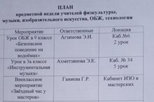 В течение недели запланированы открытые уроки по технологии, физической культуре , музыке и ОБЖ.