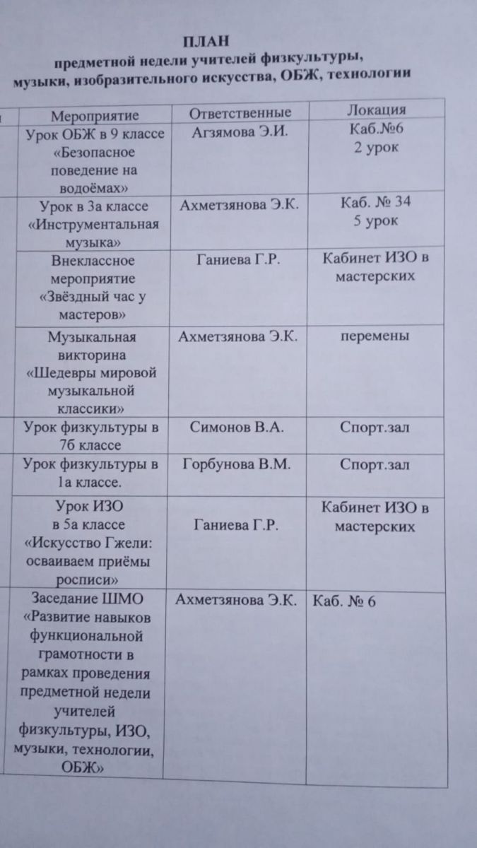 Предметная неделя учителей физкультуры, Музыки, изобразительного искусства, ОБЖ, технологии. 02.12.2023