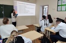 Для учеников 9-11 классов выступил представитель Казанского кооперативного колледжа и ВУЗа. Он рассказал детям о каждом направлении, о вступительных экзаменах и какую профессию можно получить в их ВУЗе.