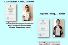 - участниками заключительного этапа республиканских олимпиад «Путь к Олимпу» (Ахметзянова Алина (10 класс, химия), Салимов Бунед (11 класс, английский язык)
