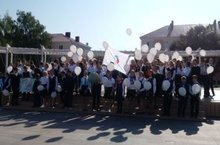 Школьная линейка, посвященная памяти погибшим, детям и взрослым, во время террористического акта в городе Беслан республики Северная Осетия.