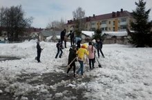 В рамках единого экоурока мы провели субботник по уборке территории от снега. Ребята раскидывали снег, чтобы быстрее всё растаяло. Все молодцы!