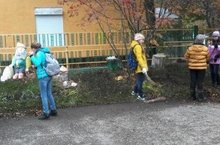 В субботу учащиеся нашей школы вышли на уборку территории. Листва уже почти опала, и ребята собрали её, теперь везде чисто и красиво. Молодцы, ребята!