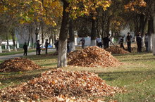 23 сентября 2015 г. наши учащиеся работали в парке, убирали листву.