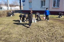 Ребята очищали территорию школы и закрепленный участок школы.