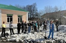 Сотрудники нашей школы вышли на субботник , чтобы внести свой вклад в благоустройство родного города и школьной территории.