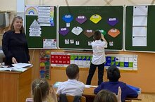 На уроке были использованы словесно-наглядные, практические, частично-поисковые методы обучения, которые способствуют высокому уровню мотивации в обучении. На уроке организованы фронтальная, индивидуальная и парная формы работы. На всём его протяжении прослеживается воспитание у детей самоконтроля, сопереживания, чувства коллективизма и взаимопомощи, патриотизма, дети учатся рефлексии своих действий. Учителем умело спланированы этапы урока, разработана система заданий для творчества, создана проблемная ситуация в начале урока. Для использования проблемы были применены мотивирующие приёмы.