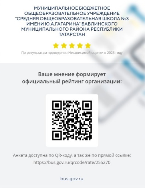 - Форма бумажной АНКЕТЫ для оценки качества образовательной деятельности МБОУ "СОШ №3 имени Ю.А.Гагарина" Бавлинского муниципального района Республики Татарстан