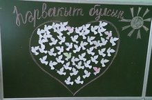 "Бердәм "Тынычлык күгәрчене" сәгате" халыкара акциясе кысаларында 1а сыйныфы укучылары кәгазьдән күгәрченнәр ясадылар. Балалар белән өлкәннәргә, ветераннарга карата мәрхәмәтле булу турында сөйләштеләр.Укучыларга Бөек Ватан сугышында яулаган җиңүнең кыйммәте турында онытмаска куштылар.