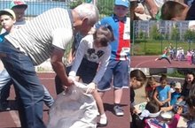 В нашем пришкольном лагере прошел очередной насыщенный день. Для ребят был организован праздник "Сабантуй", где ребята соревновались во всех видах: перетягивание каната, "сектор приз", "догони зайца", "найди клад", "накорми друга", и конечно же зажигательные национальные танцы. После обеда было еще интереснее - День Нептуна - обливание. Было очень весело!!!