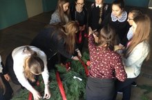 Учащиеся 10 класса в рамках празднования Дня Победы изготовили гирлянду для возложения к памятнику "Самолет".