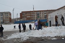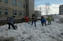 Экологик айлык кысаларында укытучылар һәм хезмәткәрләр мәктәп яны территориясендә тату итеп эшләделәр.