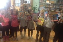 1 нче Б сыйныфы укучылары мәктәп китапханәсеннән кышкы каникулларда укыр өчен китаплар алдылар.