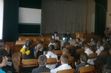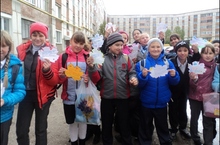 С учащимися 6а, 7а, 8а 11.10. 2013 г. проведена акция "Мы за здоровый образ жизни": спортивная эстафета, раздача рекламок по улицам микрорайона №27