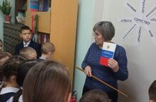 1б сыйныф укучылары өчен, мәктәп китапханәчесе Загирова Ф. И., "Ватан данына"дип исемләнгән патриотик сәгать үткәрде.