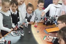 Ребята, которые занимаются в объединении дополнительно образования «Робототехника: проектирование и конструирование», пригласили на свое занятие обучающихся 2 б класса. Они показали им модели, которые собрали на занятиях. А посвятили они свою выставку Дню космонавтики.