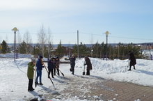 В В школе № 7 прошел первый весенний субботник по очистке территории от снега.