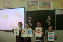 Во 2 а классе проведена беседа на тему: « Безопасность дорожного движения». Ребята повторили правила дорожного движения. Было проведено командное соревнование «Как мы знаем правила безопасности на дороге». Дети обсуждали различные ситуации на дороге, отвечали на вопросы викторины, разгадывали ребусы, загадки.