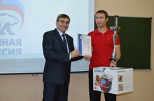 В день рождения фракции "Единая Россия" 1 декабря учителю физической культуры Хамитову Руслану Витальевичу вручили ценный подарок за 1 место в семейном празднике "Мы здоровы! Присоединяйтесь!", проводимой фракцией "Единая Россия". Их семья заняла 1 место в игре "Стритбол"! Молодцы! Поздравляем!