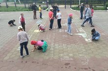 Ребята рисовали на асфальте коллаж "Наша планета глазами детей". Затем был объявлен "Час ГТО". Все ребята сдавали один из нормативов ГТО - прыжки в длину с места. По результатам второго дня сдачи ГТО, лидирует 2 отряд.
