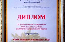 Татар Кандызы мәктәбе районыбыз авыл җирлекләре арасында Яңа елга иң яхшы бизәлгән мәктәп дип табылды һәм Баулы муниципаль районы башкарма комитеты ДИПЛОМЫ белән бүләкләнде.
