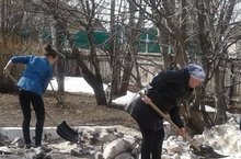 Очистка территории от снега. Мәктәп янын кардан чистарту. 05.04.2019