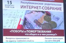 15 декабря с 12.00-13.30 состоится интрнет-собрание родителей по теме "Поборы и пожертвования". Приглашаем родителей 1-10 классов принять активное участие:шаг 1 : зарегистрироваться на сайте киу.рфшаг 2: задать вопрос на roditelirt@mail.ru -
