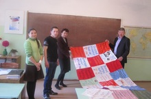 Мәктәптә «Солдат кулъяулыгы» акциясе эше дәвам итә. Югары сыйныф кызлары кулъяулыкларның соңгыларын тоташтырдылар.