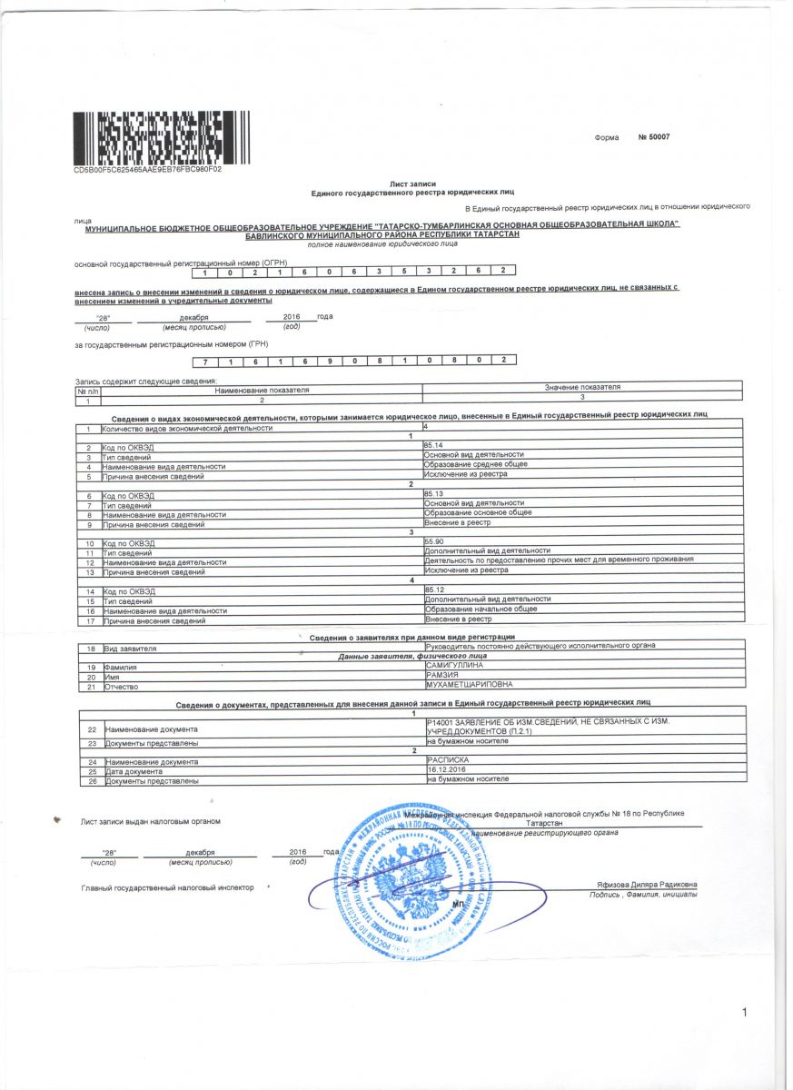 | Короткое название: | МБОУ "Татарско-Тумбарлинская ООШ" |