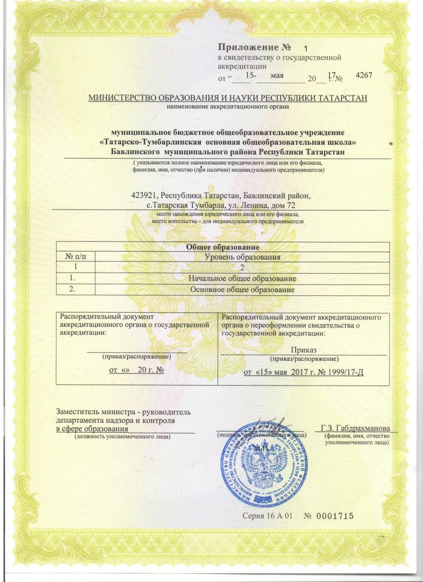 | Адрес: | 423921, Республика Татарстан, с. Татарская Тумбарла, ул. Ленина, д. 72 |