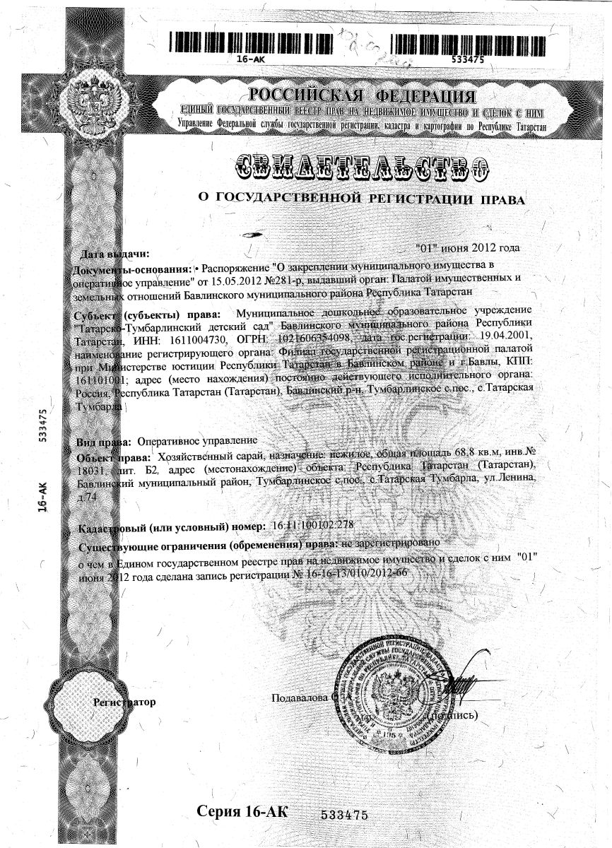 | Короткое название: | МБДОУ "Татарско-Тумбарлинский детский сад" БМР РТ |