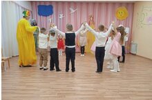 Красавица-осень радовала детей хороводами. Интересным моментом праздника был приход огородного Пугало, дети с удовольствием помогли собрать урожай. Показали свои умения в песенном и музыкально-ритмическом творчестве: при исполнении песен, танцев. А самым ярким и запоминающимся эпизодом стал сюрпризный момент – появление мишки, с которым играли в веселые игры. В завершении праздника Осень угостила всех ребят вкусными яблоками.