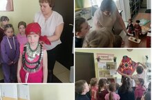 10 марта дети старшей разновозрастной группы побывали на экскурсии в Покровско-Урустамакской сельской библиотеке. Библиотекарь Бахтиярова Т. А провела этно -игровую программу посвященную Году национальных культур и традиций в Республике Татарстан «О чем нам расскажет народный костюм». Татьяна Анатольевна рассказала детям об удмуртском национальном костюме. Дети узнали, какая была национальная одежда раньше и как менялась с течением времени. Она рассказала о том, как в старину шили костюмы, какие атрибуты и декор использовались в те времени, как завязывали платки удмуртские девушки и женщины, какие головные уборы носили мужчины. А в завершении беседы дети клеили макеты удмуртских костюмов мужских и женских.