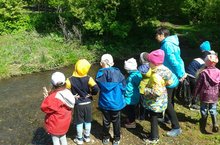 Дети старшей разновозрастной группы ходили на экскурсию на речку, родник. По дороге рассматривали лекарственные растения, растущие на берегах реки, различных насекомых. Беседовали о пользе муравьев. В рамках экологической акции, собрали мусор возле речки и родника. Затем поднялись на гору, осмотрели село с высоты, поиграли в подвижные игры.