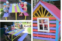 Выражаем особую благодарность нашим родителям -Тараканову Василию и Вотчинникову Владиславу за постройку нового домика на участке, Можгину Артему за красивый столик со скамейками. Мы очень рады вместе с детьми таким родителям с золотыми руками!