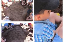 Сегодня у нас была организована игра "Песочные фантазии". Дети с удовольствием придумывали различные поделки из песка, особенно понравилась коллективная работа "Чудо-юдо рыба кит", затем дети лепили себе различные формы "обуви".