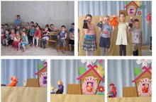 Неделя театра завершилась показом детьми подготовительной группы сказки "Лиса, заяц и петух". Малыши с великим удовольствием посмотрели и в конце громко хлопали юным артистам.