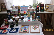 Выставка поделок, сделанная руками родителей, прошла у нас в детском саду. Здесь можно увидеть макеты дорог, разные виды светофоров, машины, постовые, дорожные знаки - выполненные вязанием, шитьем, лепкой из теста, торцеванием и т.д. Спасибо родителям, молодцы!