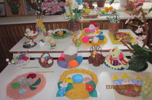 Ежегодно в нашем детском саду проходит выставка "Пасхальная ярмарка". В ней принимают активное участие дети, родители и сотрудники детского сада. На выставке представлены работы различной техники выполнения (лепка из теста, вязание, аппликация из бумаги, поделки из природного материала). Все участники проявили необыкновенную фантазию и выдумку, а также показали свое творчество и мастерство.