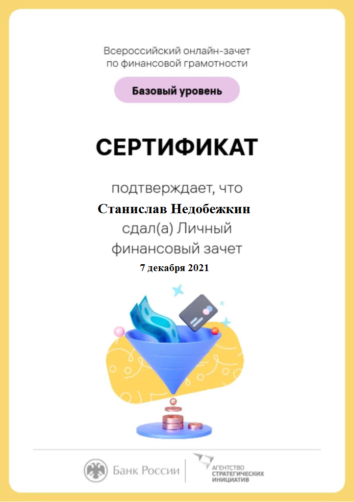 Недобежкин С.В. Сертификат ВИЧ Личный финансовый план Финансовый зачет