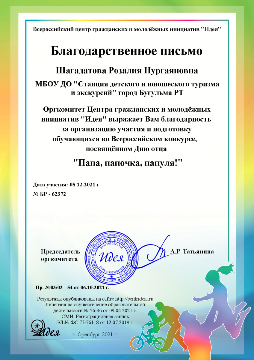 Муниципальное бюджетное образовательное учреждение дополнительного образования "Станция детского и юношеского туризма и экскурсий Бугульминского муниципального района Республики Татарстан"/Татарстан Республикасы Бөгелмә муниципаль районы балалар һәм яшүсмерләр өчен туризм һәм экскурсия станциясе балаларга бюджет өстәмә белем бирү муниципаль учреждениесе