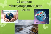 "День Земли" 22.04.2018 Международным День Земли был объявлен в 1990 году. Тогда по инициативе американского Стэнфордского университета 1990-е годы были провозглашены "Десятилетием окружающей среды", что поддержали в более чем 120 странах мира. В странах бывшего СССР 22 также в День Земли было принято проводить субботники и мероприятия по облагораживанию парков. Все желающие выходили из дома и помогали очистить улицы от мусора. Но тогда эти мероприятия проходили 21 марта в день весеннего равноденствия. В 2009 году Генеральная Ассамблея ООН провозгласила Международный День Земли, постановив отмечать его 22 апреля. В этот день во всех уголках планеты проводятся экологические мероприятия, воспитательные акции для детей и подростков в целью привлечь внимания к глобальным проблемам на Земле.