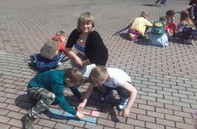 На центральной площади города прошли мастер- класс, где дети создавали свои красочные города на асфальте.