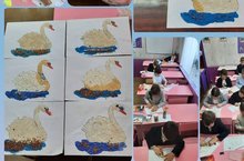 Нетрадиционное рисование пластилином с добавлением крупы, аппликация "Лебедь".