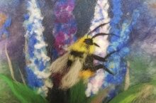 В технике,, шерстяная акварель" ребята нарисовали шерстью ландыши, подснежники, шмеля лугового.